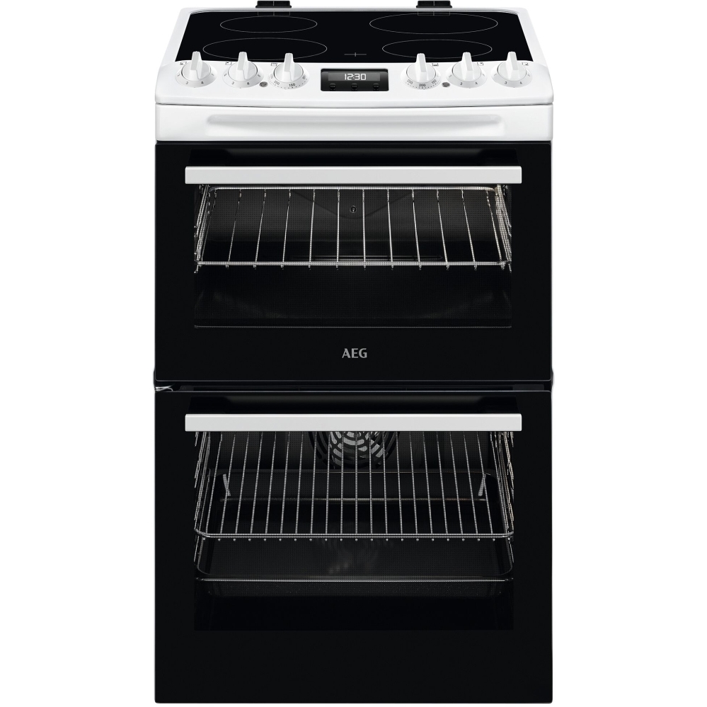 Transform your cooking experience with the AEG 55cm Double Oven Electric Cooker, designed to bring elegance and efficiency to your kitchen. This stylish white cooker features a radiant ceramic hob, ensuring your meals are prepared with precision and care. The double oven allows for multilevel cooking, perfect for those who love to entertain or prepare multiple dishes at once.
