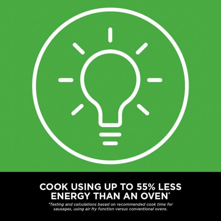 | Additional Information | Space-saving air fryer with 2 stacked drawers Evenly cook 4 layers of food with 2x stacked meal racks Perfect for 8 people, large families & entertaining Surround Heat IQ ensures food is evenly cooked and crisped on all levels 30% slimmer* (*vs AF400.) 38.5cm tall Cook using less energy than an oven** (**Testing and calculations based on recommended cook time for sausages, using air fry function versus conventional ovens.) Cook up to 55% faster than fan ovens*** (***Tested against fish fingers and sausages.) Air Fry using little to no oil – up to 75% less fat than traditional frying methods**** (****Tested against deep-fried, hand-cut French fries.) Fit a whole 1.4kg roast chicken in each 4.75L drawer Use a different function, time and temperature in each drawer – both ready at the same time with the SYNC function Easy to clean with non-stick, dishwasher-safe drawers and crisper plates. |