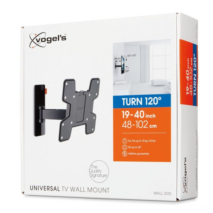 Regardless of which television you wish to mount, there is a great chance that you will find a suitable full-motion WALL bracket. Because within the large assortment of Vogel’s WALL series, there is bound to be a full-motion wall bracket suitable for your television! You can turn and tilt your TV so it has the ideal position, allowing you to comfortably watch television. Without screen glare or flares, because you can simply turn these away. You use the full-motion WALL intuitively, and thanks to the supple hinge this TV bracket easily reacts to your corrections.