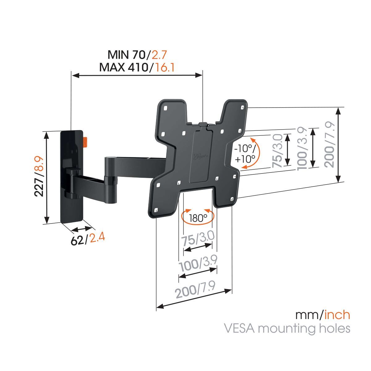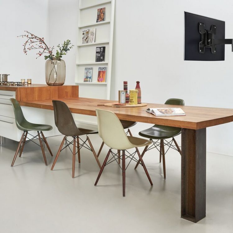 Regardless of which television you wish to mount, there is a great chance that you will find a suitable full-motion WALL bracket. Because within the large assortment of Vogel’s WALL series, there is bound to be a full-motion wall bracket suitable for your television! You can turn and tilt your TV so it has the ideal position, allowing you to comfortably watch television. Without screen glare or flares, because you can simply turn these away. You use the full-motion WALL intuitively, and thanks to the supple hinge this TV bracket easily reacts to your corrections.
